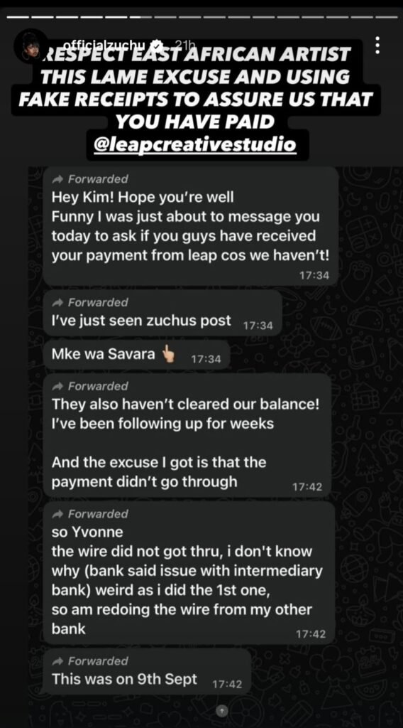 In statements shared through her management, Zuchu claims that the LEAP Creative Agency, the official event organizers, failed to honor their contractual obligations.