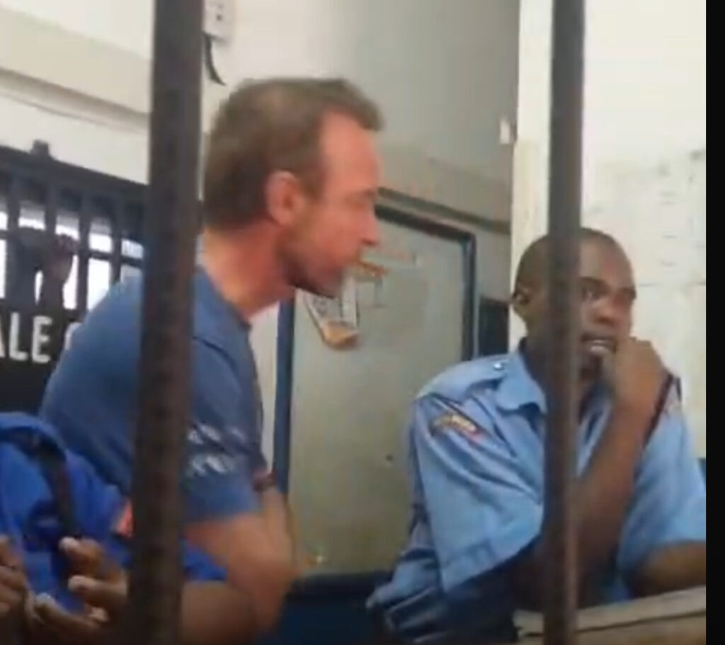 NAIROBI, Kenya- A disturbing video has emerged showing a Dutch national insulting and throwing mucus at a police officer while in custody at Diani Police Station.
