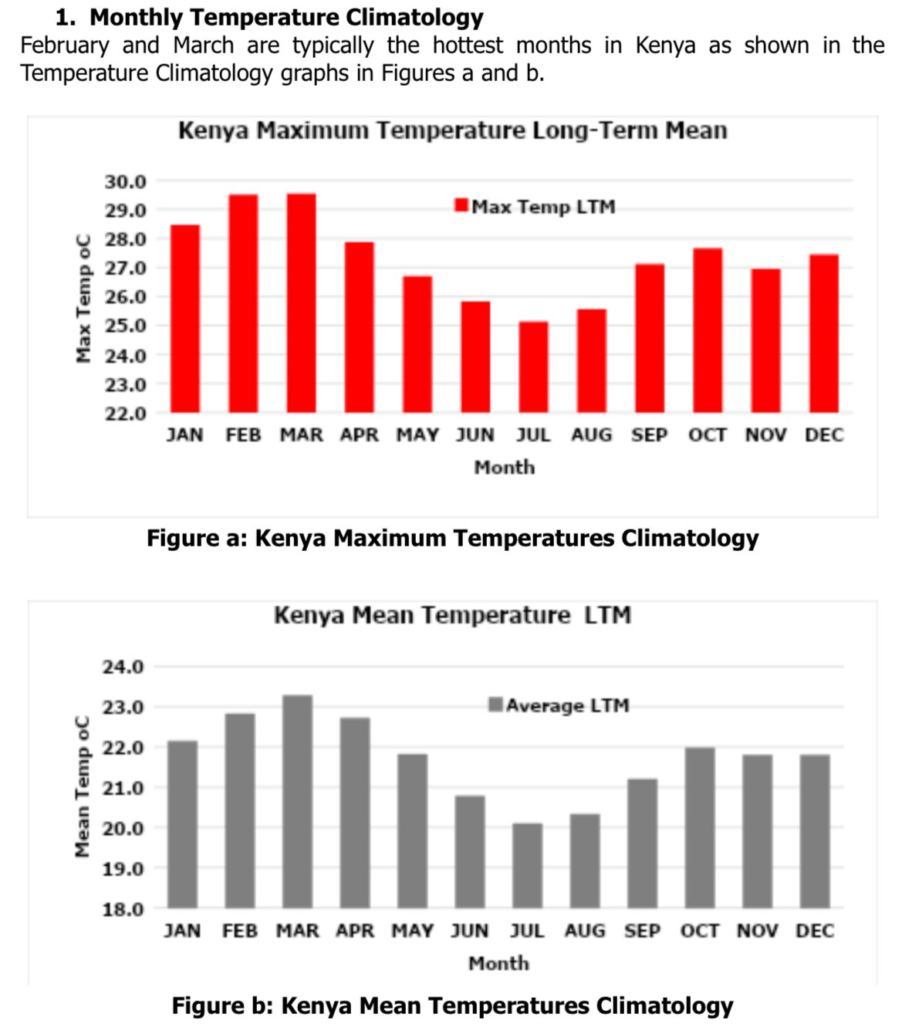 The Kenya Meteorological Department (KMD) said a heat wave in the Kenyan context refers to three or more consecutive days of extremely high daytime temperatures that exceed locally determined limits and are linked to increased health risks.